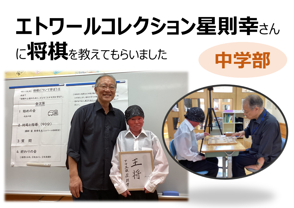 秋田県立秋田きらり支援学校 > 学校のようす > 中学部 ここから本文です。 カテゴリー:中学部 2025年10月10日 ピクニックコンサートを鑑賞しました 中学部 2025年10月9日 中学部ラグビー教室 中学部 2025年10月3日 中学部2年生 宿泊学習に行きました 中学部 2025年10月1日 ポートタワー・セリオンに行きました 中学部 2025年9月19日 将棋教室 中学部 2025年9月11日 プラネタリウムで月の学習をしました 中学部 2025年7月25日 中学部作業学習製品「油グッバイ」を納品しました 中学部 2025年7月25日 中学部委員会活動紹介 中学部 2025年7月8日 中学部 秋田市民俗芸能伝承館を見学しました 中学部 2025年7月8日 第1回中学部生徒総会が行われました 中学部 1 / 212» 月別アーカイブ 2025年10月 2025年9月 2025年8月 2025年7月 2025年6月 2025年3月 2025年2月 2025年1月 2024年12月 2024年11月 2024年10月 2024年9月 2024年7月 2024年6月 2024年5月 2024年4月 2024年1月 最新の投稿 小学部5年生 宿泊学習 ピクニックコンサートを鑑賞しました 中学部ラグビー教室 中学部2年生 宿泊学習に行きました すまいる学級の学習 カテゴリー 全校 小学部 中学部 高等部 すまいる学級
